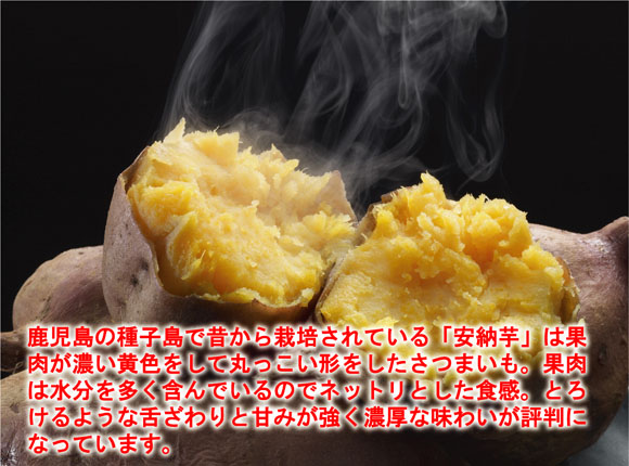 鹿児島の種子島で昔から栽培されている伝統野菜「安納芋」は果肉がきれいなオレンジ色をしており丸っこい形をしたさつまいもで果肉は水分が多く食感はネットリ。